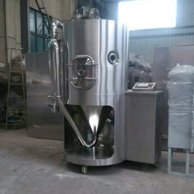 該機(jī)采用全封閉形式,所有部件均采用不銹鋼制造,配有三級(jí)凈化裝置,過(guò)濾后的空氣達(dá)十萬(wàn)級(jí)要求 。簡(jiǎn)體與頂部裝有冷壁裝置,使壁溫<80℃,物料在壁上停留也不焦化變質(zhì)現(xiàn)象,大大增加了收粉率(達(dá)95%以上),而且不會(huì)產(chǎn)生混藥現(xiàn)象和粘壁現(xiàn)象。基本原理:中藥浸膏高速離心噴霧裝置是離心式噴霧干燥技術(shù)在特定物料干燥中的應(yīng)用 ,也是利用高速離心式霧化器使物料分散成霧狀,與熱空氣所充分接觸 ,完成瞬間干燥,形成粉狀成品的干燥裝置。