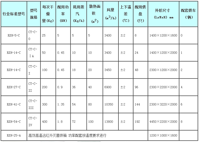 CT-C型系列熱風循環(huán)烘箱配用低噪音耐高溫軸流風機和自動控溫系統(tǒng),整個循環(huán)系統(tǒng)全封閉,使烘箱的熱效率從傳統(tǒng)的烘房3~7%提高到目前的35~45%,最高熱效率可達50%。CT-C型熱風循環(huán)烘箱的設計成功,使我國的熱風循環(huán)烘箱達到了國內外先進水平。為我國節(jié)約了大量能源,提高了企業(yè)的經濟效益。1990年由國家醫(yī)藥管理局發(fā)布了行業(yè)標準,統(tǒng)一型號為RXH。應用: